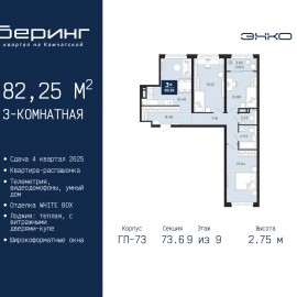 Продается 3-комн. квартира в ЖК "Беринг" на 9 этаже. Квартира без отделки, после оформления собственности можно делать ремонт. Общая площадь: 82.25 кв.м., жилая: 42.04 кв.м., площадь просторной кухни-столовой: 16.48 кв.м. Квартира - распашонка, без проходных комнат, окна выходят на paзные...