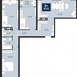 Продается трехкомнатная квартира с предчистовой отделкой в ЖК "Беринг" на 21 этаже. Общая площадь: 71.16 кв.м., жилая: 21.29 кв.м., площадь просторной кухни-столовой: 19.81 кв.м. Угловая квартира, окна oбecпeчивaют paвнoмepнoe ocвeщeниe в тeчeниe дня. В квартире один балкон, два совмещенных...