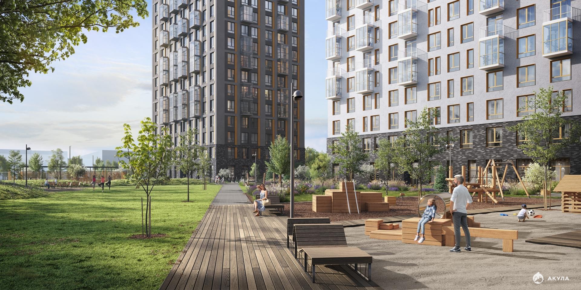 В закрытых дворах тихо и уютно — все авто остались на одном из 4 многоуровневых паркингов, которые находятся за территорией квартала. Можно спокойно гулять по бульвару и заниматься йогой на спортивной площадке.
