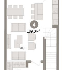 id:30835. Двухуровневая квартира с кухней-гостиной и четырьмя спальнями в Октябрьском на Туре. Особенности планировки: второй санузел, без отделки, двухуровневая, свободная планировка, разнесённые спальни, мастер-спальня, постирочная, балкон, терраса на крыше. Проект...