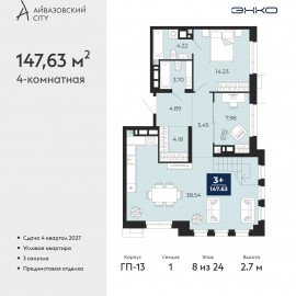 Спешите оформить бронирование по акционной цене, предложение ограничено! Стоимость квартиры указана со скидкой, ваша экономия составит 3, 250, 000 руб. Информация по телефону, наши менеджеры вам все расскажут. Продается 4-комн. квартира с предчистовой отделкой в ЖК...