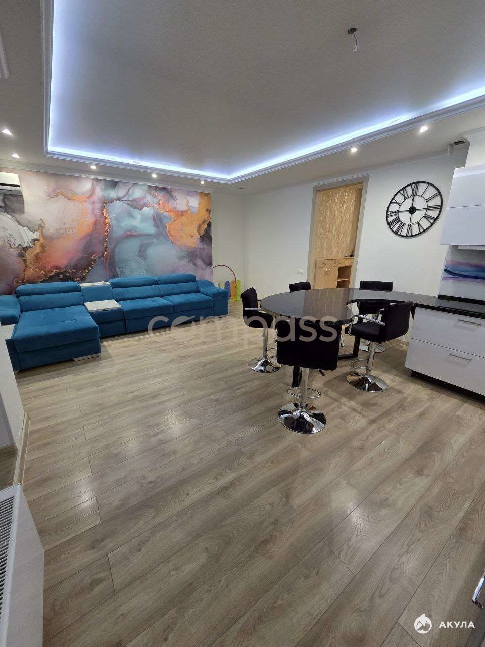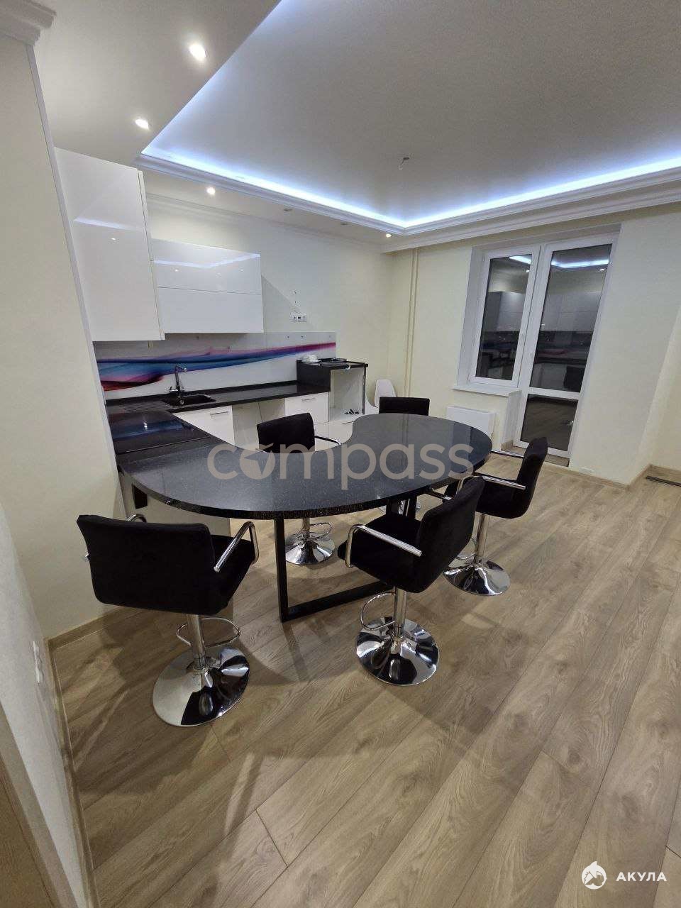 Квартира находится на 15м этаже. отсюда прекрасный вид на город и на рассвет. Планировка: кухня- гостинная и три спальных комнаты, тамбур, гардеробная, два санузла, два балкона, один балкон переделан в утепленный кабинет.