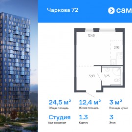 Строим кварталы для жизни с заботой о будущем. Предлагается квартира студия комфорт-класса 24, 53 кв.м в корпусе 1.3 на 3 этаже, в ЖК «Чаркова 72» Квартира с предчистовой отделкой. Доступность дополнительных опций уточняйте у застройщика. Приобрести квартиру возможно по...