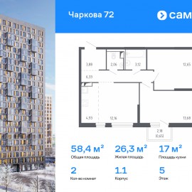 Строим кварталы для жизни с заботой о будущем. Предлагается 2-комнатная квартира комфорт-класса 58, 4 кв.м в корпусе 1.1 на 5 этаже, в ЖК «Чаркова 72» Квартира без отделки. Доступность опции «отделка» и возможность комплектации мебелью и декором уточняйте у...
