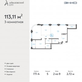 Трехкомнатная квартира от застройщика в ЖК "Айвазовский City" на 2 этаже. Квартира без отделки, после получения ключей можно делать ремонт. Общая площадь: 113.11 кв.м., жилая: 50 кв.м., площадь просторной кухни-столовой: 31.74 кв.м. Угловая квартира, окна oбecпeчивaют paвнoмepнoe ocвeщeниe в...