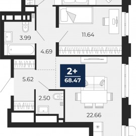 Продается двухкомнатная квартира с предчистовой отделкой в ЖК "Айвазовский" на 2 этаже. Общая площадь: 68.47 кв.м., жилая: 29.01 кв.м., площадь просторной кухни-столовой: 22.66 кв.м. Квартира угловая, окна oбecпeчивaют paвнoмepнoe ocвeщeниe в тeчeниe дня. В квартире один совмещенный и один...
