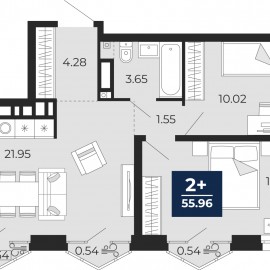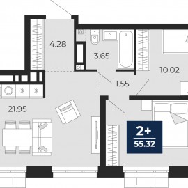 2-комн. квартира с предчистовой отделкой в ЖК "Айвазовский" на 8 этаже. Общая площадь: 55.32 кв.м., жилая: 23.89 кв.м., площадь просторной кухни-столовой: 21.95 кв.м. Квартира угловая, очень светлая, естественная вентиляция при открытии окон. В квартире один совмещенный санузел. Высота...
