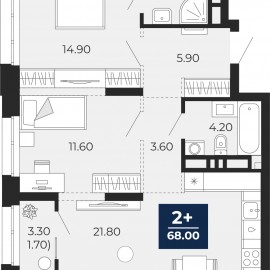 Двухкомнатная квартира от застройщика с предчистовой отделкой в ЖК "Айвазовский" на 2 этаже. Общая площадь: 69 кв.м. Высота потолков 2.7 м. Дом монолитный, многоподъездный, переменной этажности, от 14 до 24 этажей. Квартира находится во 2-й секции высотой 18 этажей в корпусе ГП-8....