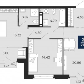 Двухкомнатная квартира с предчистовой отделкой в ЖК "Айвазовский" на 18 этаже. Общая площадь: 76.2 кв.м. Высота потолков 2.7 м. Дом монолитный, многоподъездный, переменной этажности, от 14 до 24 этажей. Квартира находится во 2-й секции высотой 18 этажей в корпусе ГП-8. На этаже 5...