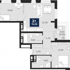Двухкомнатная квартира с предчистовой отделкой в ЖК "Айвазовский" на 9 этаже. Общая площадь: 69.6 кв.м. Высота потолков 2.7 м. Дом монолитный, многоподъездный, переменной этажности, от 14 до 24 этажей. Квартира находится во 2-й секции высотой 18 этажей в корпусе ГП-8. На этаже 5...