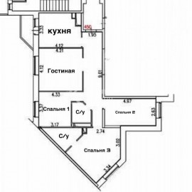 id:33041. Продаётся трёхкомнатная квартира в одном из лучших районов города. Общая площадь квартиры — 70, 7 м², из которых 40 м² — жилая площадь, а 20 м² — кухня. Расположена квартира на 4 этаже 19-этажного монолитного дома. В квартире три комнаты и два санузла,...