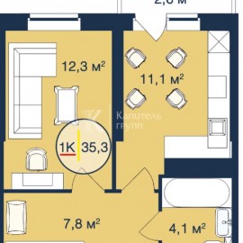 id:48988. Продам уютную однокомнатную квартиру в ЖК «Матрешки» общей площадью 35, 3 м².Дом сдан. Жилое пространство включает гостиную 15 м² и просторную кухню 11, 1 м², что создаёт идеальный баланс для комфортной жизни. Квартира расположена на 8 этаже 22-этажного...