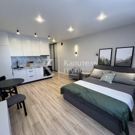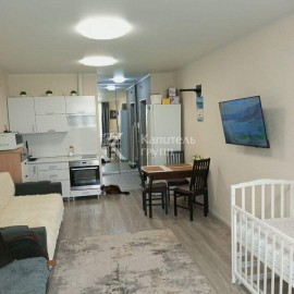id:48779. Продается просторная квартира-студия, площадью 32 кв.м. в кирпичном доме с хорошим ремонтом. Современный ЖК Олимпия, дом полностью в кирпичном исполнении. Своя котельная в доме, что обеспечивает горячей водой без перебоев круглый год. Встроенный шкаф купе в...