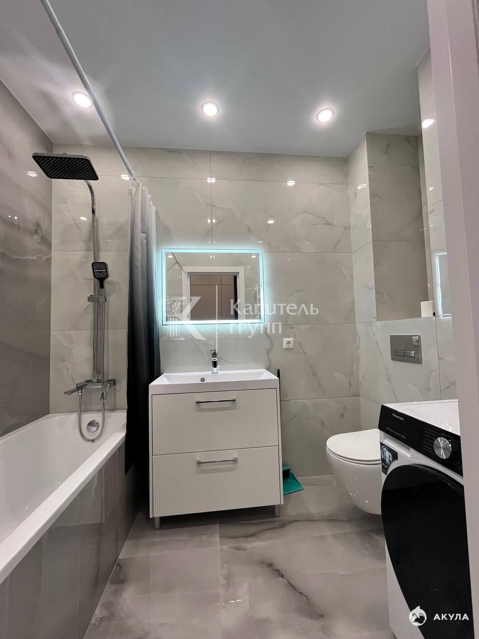 Выполнен дизайнерский ремонт, квартира полностью упакована всей мебелью и бытовой техникой, вплоть до посудомоечной машинкой. Трех этапная очистка питьевой воды, стиральная машинка с функцией сушки, кондиционер, шкафы купе.