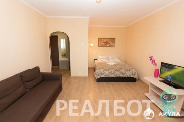 меблирована и оборудована всей техникой. Просторная комната с диваном и двуспальной кроватью,