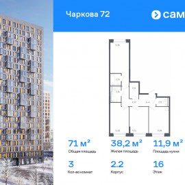 71 м² этаж 16