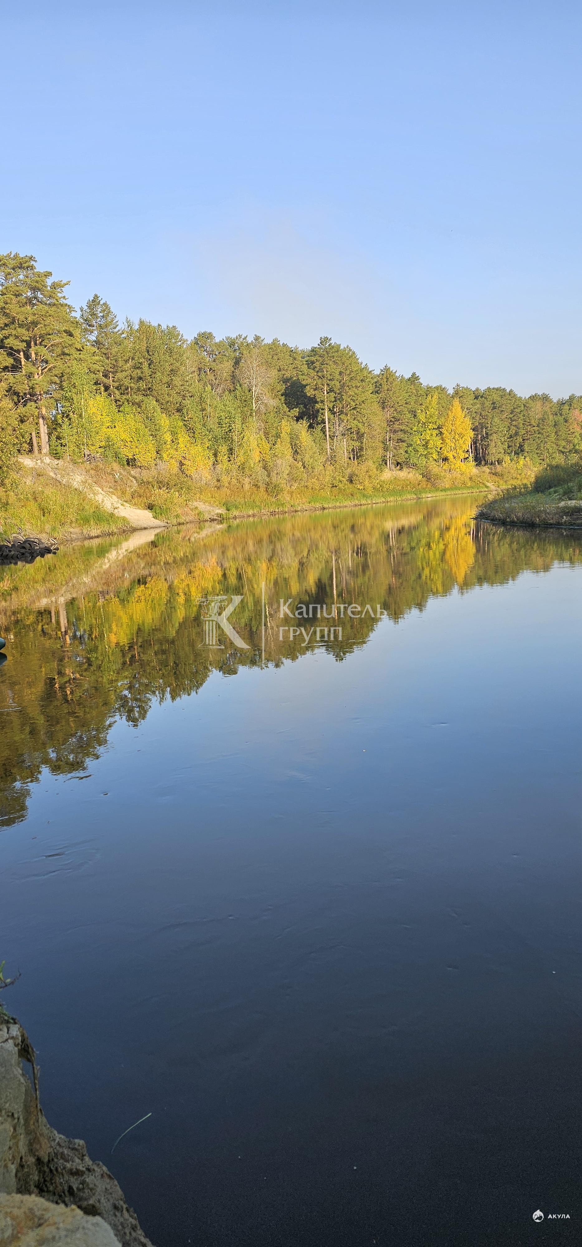 Земельный участок расположен среди красивейших природных ландшафтов в сосновом лесу на первой береговой линии реки Пышма. Участок окружен с трех сторон лесом, а с четвертой омывается рекой. Территория участка чуть более 1 Га. Также к участку примыкает полуостров с сосновым бором площадью около 2, 8 Га доступ на который возможен только через данный участок.